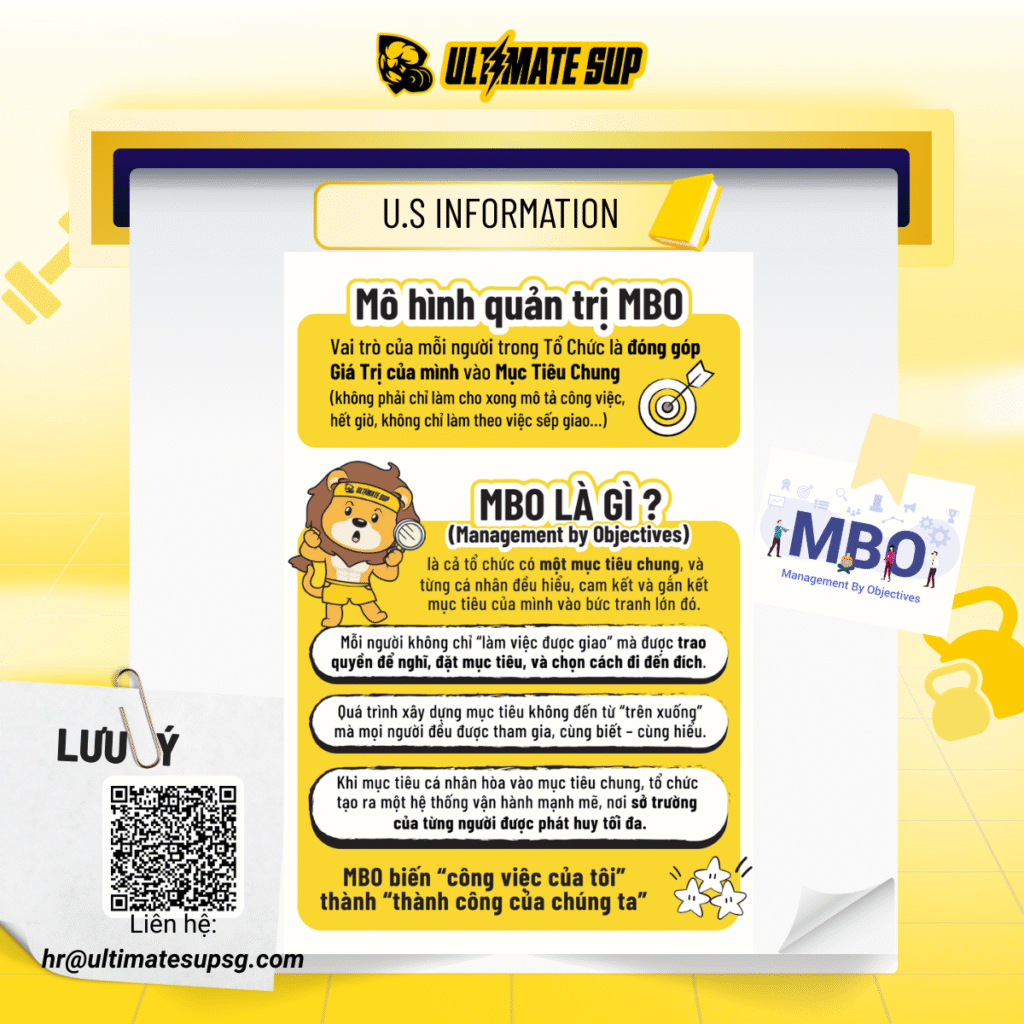 Với ứng viên, MBO là lời khẳng định rằng tại Ultimate Sup, bạn sẽ không bao giờ làm việc trong sự mơ hồ. Bạn biết chính xác bạn cần đạt điều gì, bạn cần phát triển kỹ năng nào và kết quả của bạn đang đóng góp ra sao cho tổ chức. Đây là môi trường minh bạch, rõ ràng, công bằng và hướng đến hiệu suất bền vững.